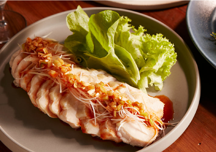 丹波赤どりのムネ肉は肉厚かつほどよい歯ごたえとしっとりとした食感です。フランスをルーツに持ち、親鶏から大切に育て、産まれた丹波赤どりは、清らかな水と澄んだ空気に恵まれた丹波の地で、のびのびと約60日間飼育されます。丹波山本自慢の銘柄鶏です。